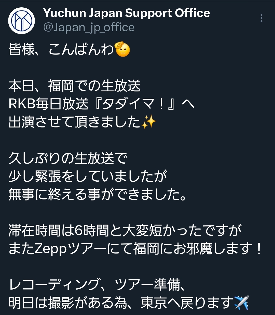 昨日はユファンの放送はお休み