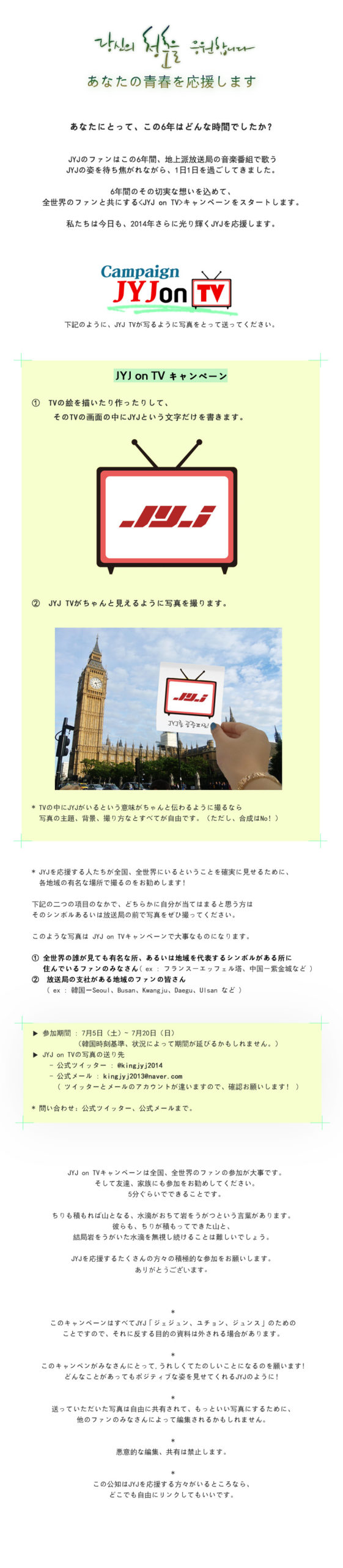 JYJは韓国のTVで歌うことができていません。 やっぱり、カムバックしたらTVで歌って欲しいなー。 と思ってちょっと参加してみようかと。 簡単にできるって書いてあるけど、 結構準備に手間がかかる。 自分のやり方が悪いのか… 続きを読む »