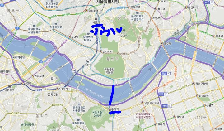 自分は、동작역(銅雀駅/トンジャッエキ)から徒歩で、
