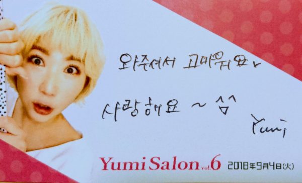 Yumiさん直筆のメッセージカード