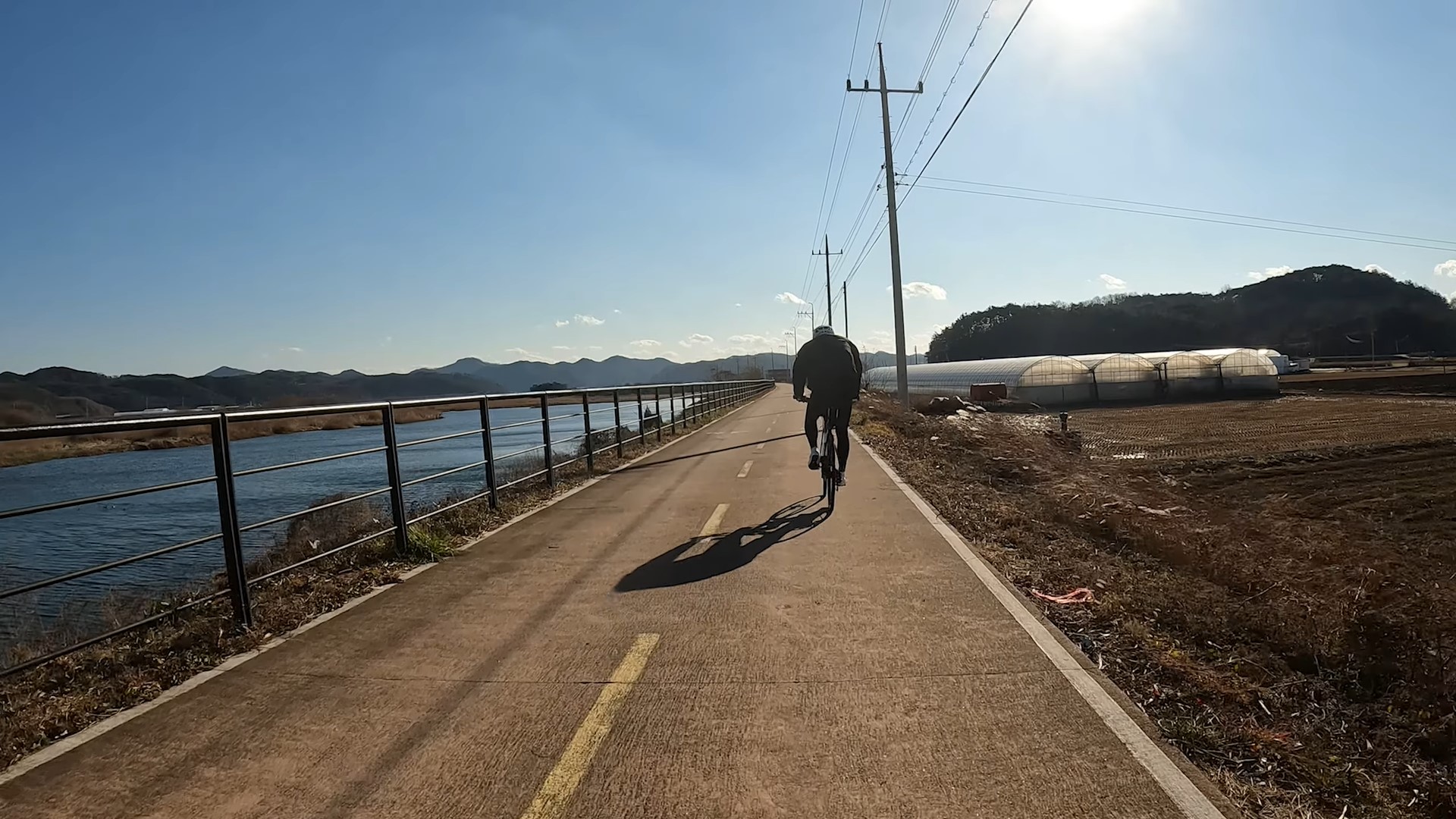 川沿いの自転車ロードが続く、風光明媚な所