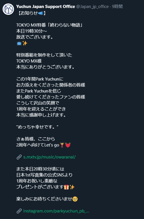 ユチョンの活動が見えることで、お返事貰ってるって感じて、