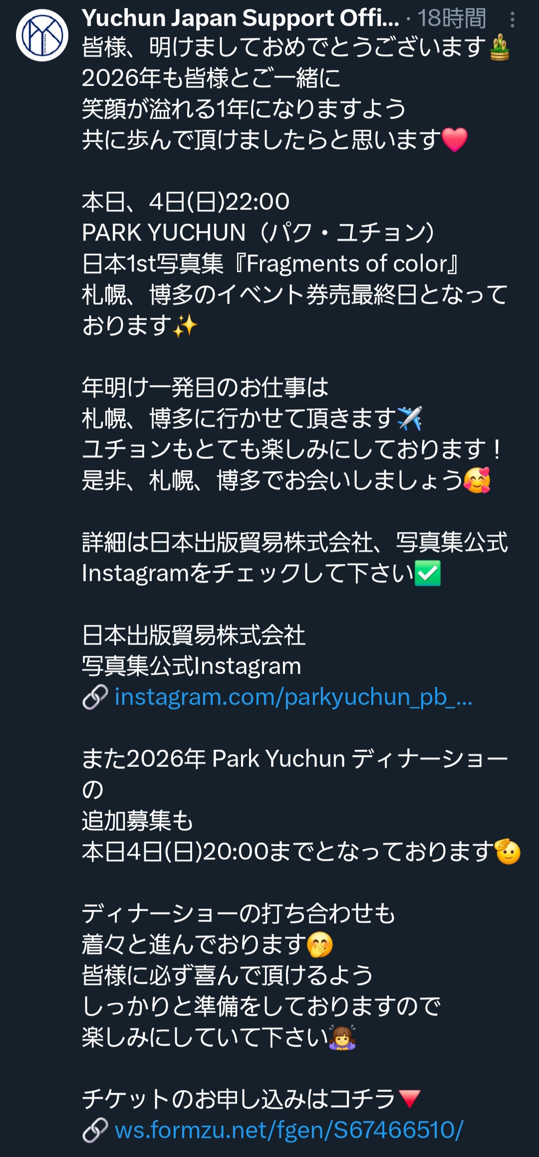 ユチョンからも夜中のInstagram